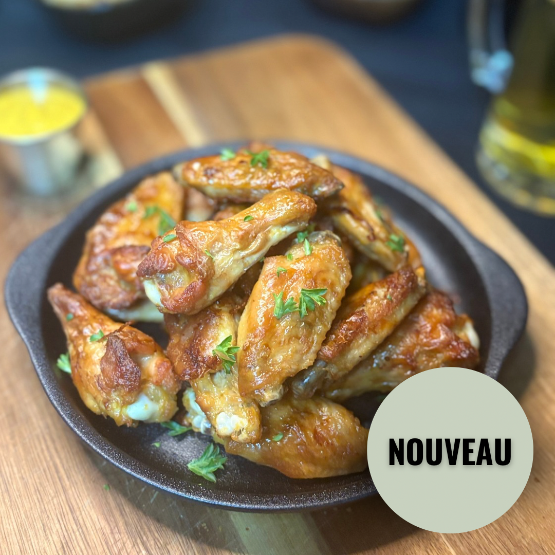- Retourner une fois. Pour des ailes bien croustillantes, les passer sous le gril 500℉/ 260℃ après 20 minutes et continuer la cuisson pendant 3 minutes. ( Le temps et la température de cuisson peuvent varier d’un appareil à l’autre.)