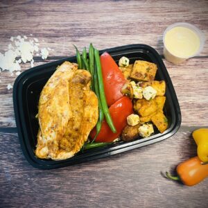 Ingrédients : Filet d’aiglefin, feta, panko, persil frais, thym frais, ail, zeste de citron, huile d’olive, épices, orzo, basilic, ciboulette, estragon, persil, roquette, citron, huile épices, légumes.