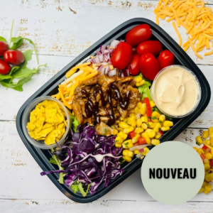 Découvrez notre sélection de salades-repas livrées à domicile, parfaites pour un lunch rapide, sain et savoureux. Nos salades sont préparées avec des ingrédients frais, des sources de protéines variées et des vinaigrettes maison. Offrez-vous un repas équilibré et sans tracas.